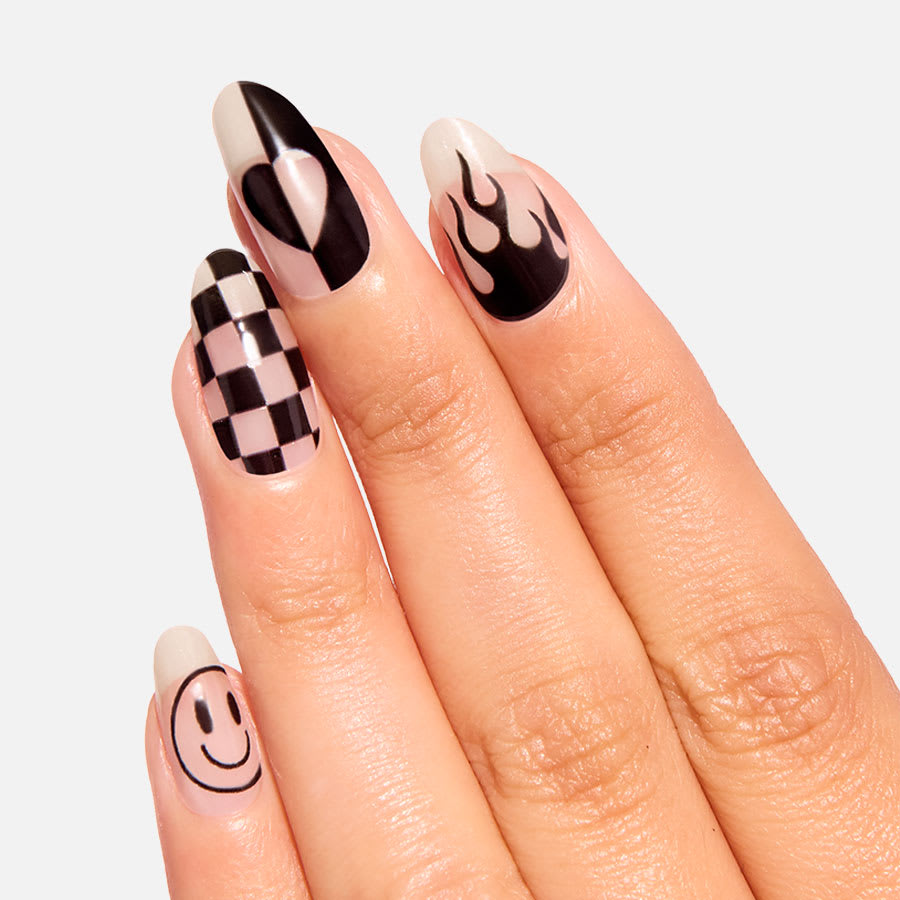 Take your manicure for a ride by layering this clear overlay with playful and punk patterns over your nails. Wear these clear nail art strips alone on bare nails or layer over your favorite nail color for a whole new look.